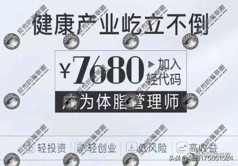 而近期,各大代理商更是在大肆推广7680元加入轻代码,成为体脂管理师的宣传,更是打出了“低投资、轻创业、低风险、高收益”的口号。