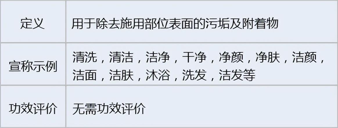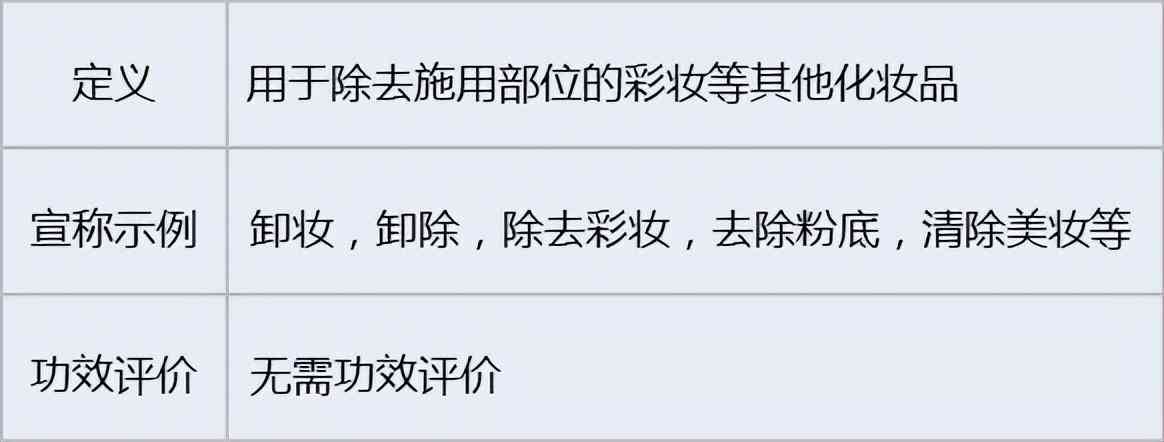 去除施用部位表面污垢及附着物的为清洁类化妆品,如果有宣称去除其他化妆品的,则为卸妆类产品。