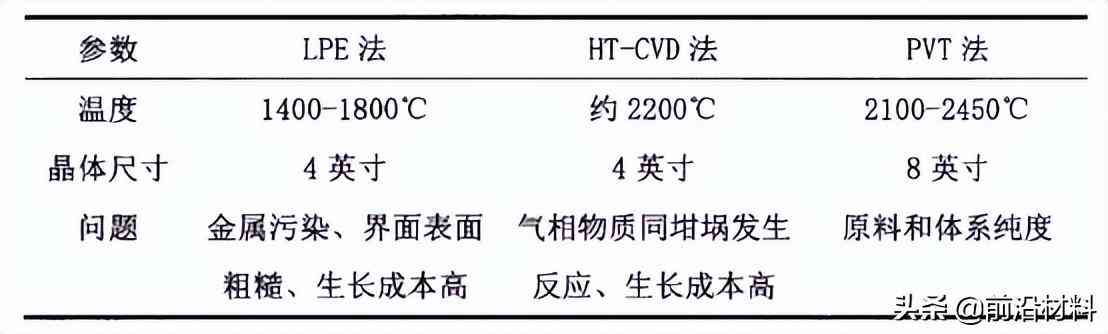 单晶衬底是半导体的支撑材料、导电材料和外延生长基片。生产碳化硅单晶衬底的关键步骤是单晶的生长,也是碳化硅半导体材料应用的主要技术难点,是产业链中技术密集型和资金密集型的环节。目前,SiC单晶生长方法有物理气相传输法(PVT法)、液相法(LPE法)、高温化学气相沉积法(HT-CVD法)等。