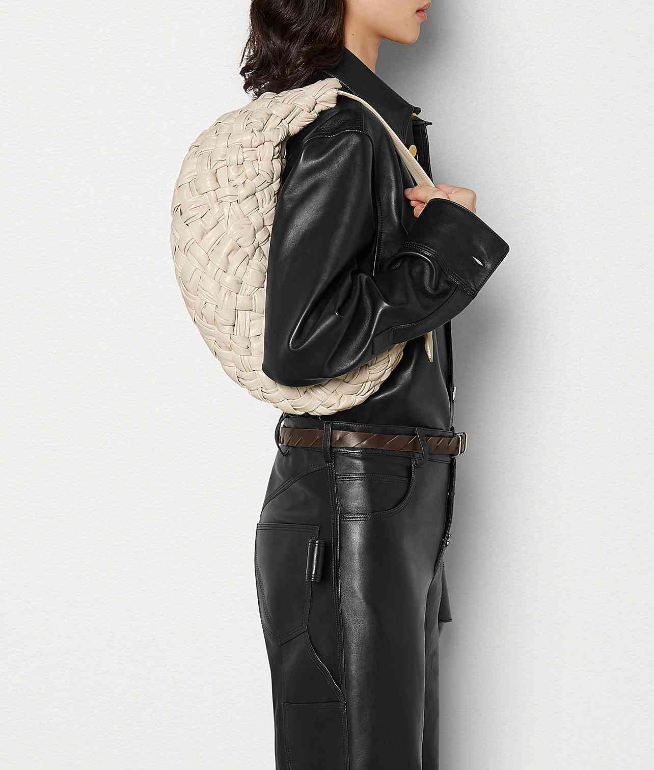 同时,Bottega Veneta的BV BANANA系列也有着十分客观的空间,虽然半月廓形注定使其无法放入部分较大物件,但化妆品、文件夹等通勤用具依然可以在其中找到一席之地。
