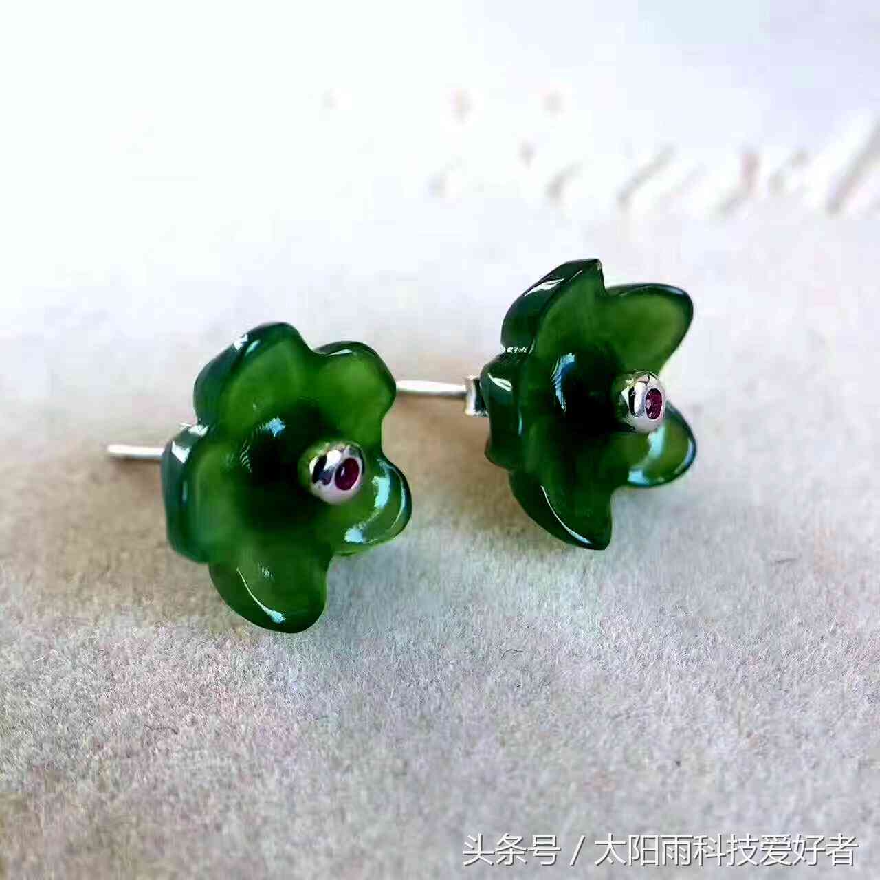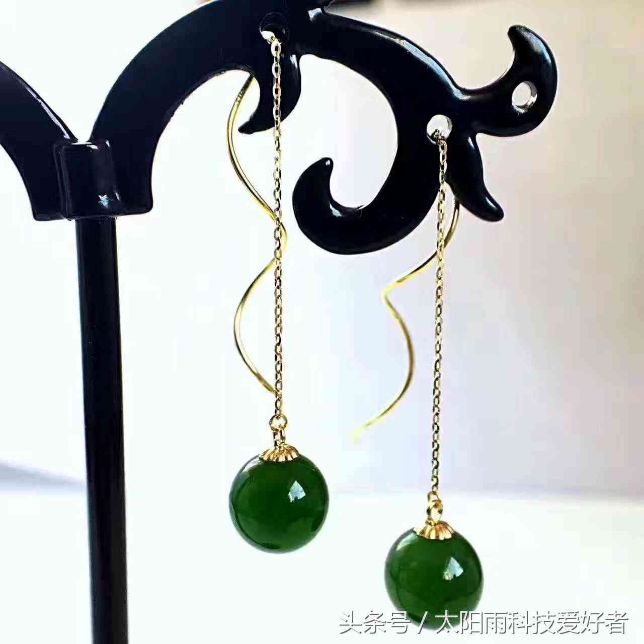 和田碧玉老料菠菜绿耳环,款式精美,时尚前沿