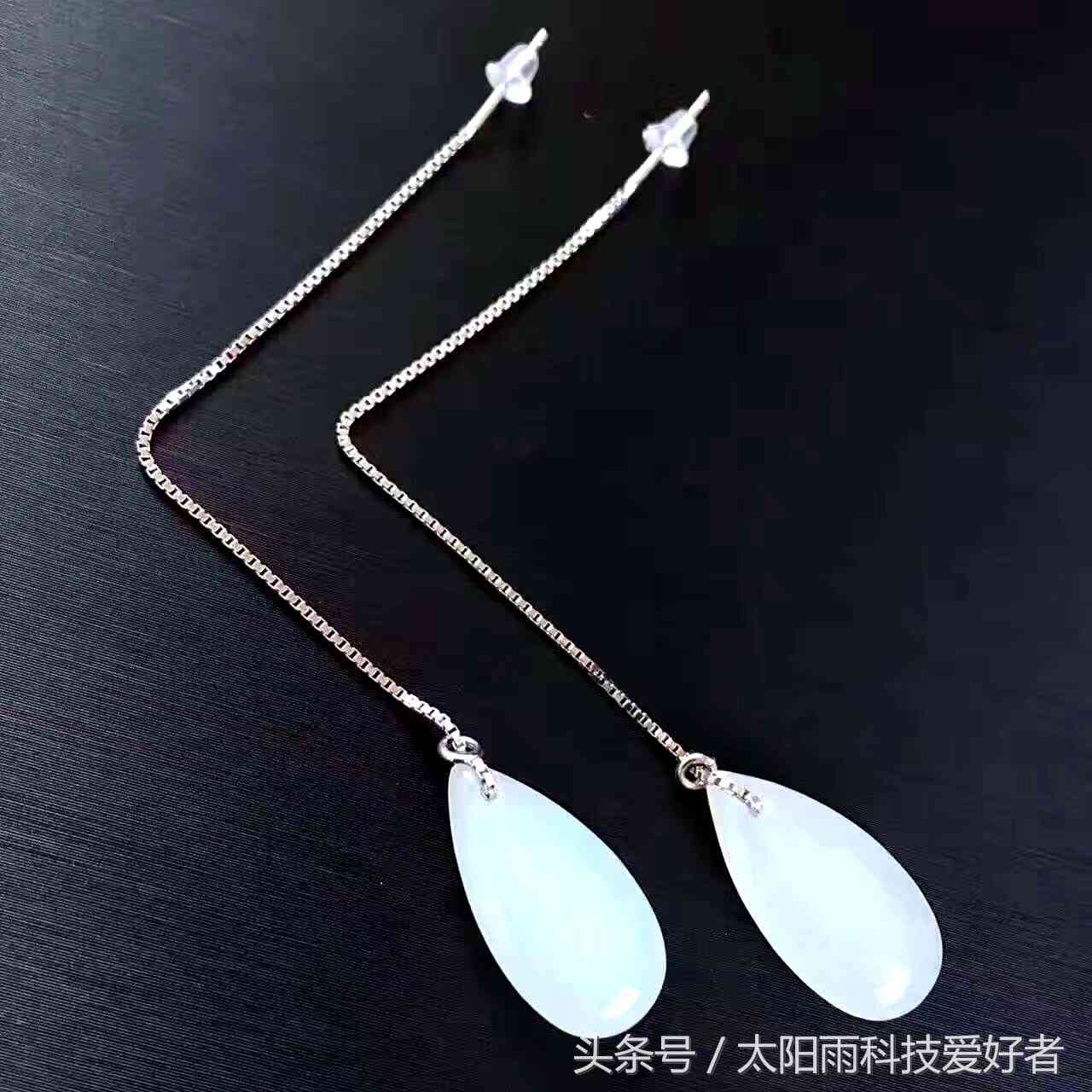 天然和田玉白玉耳线、水滴造型