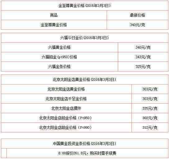 今日黄金价格多少一克_黄金首饰价格今天多少一克 2016年3月3日