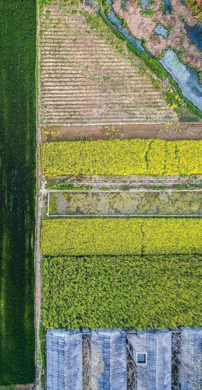南阳的村庄春意正浓,油菜花与麦田包围了农家。图/VCG