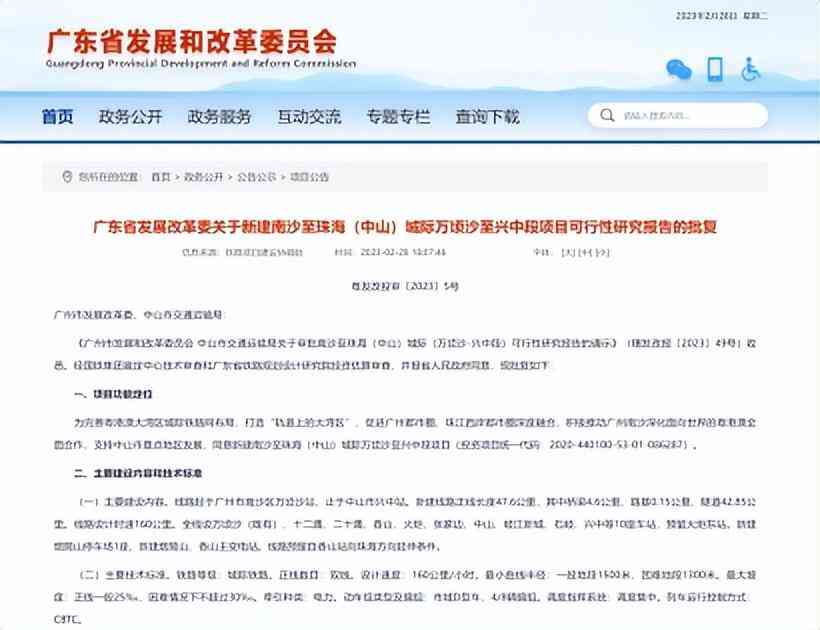 就在前两天,广东省发布了《关于新建南沙至珠海(中山)城际万顷沙至兴中段项目可行性研究报告的批复》。