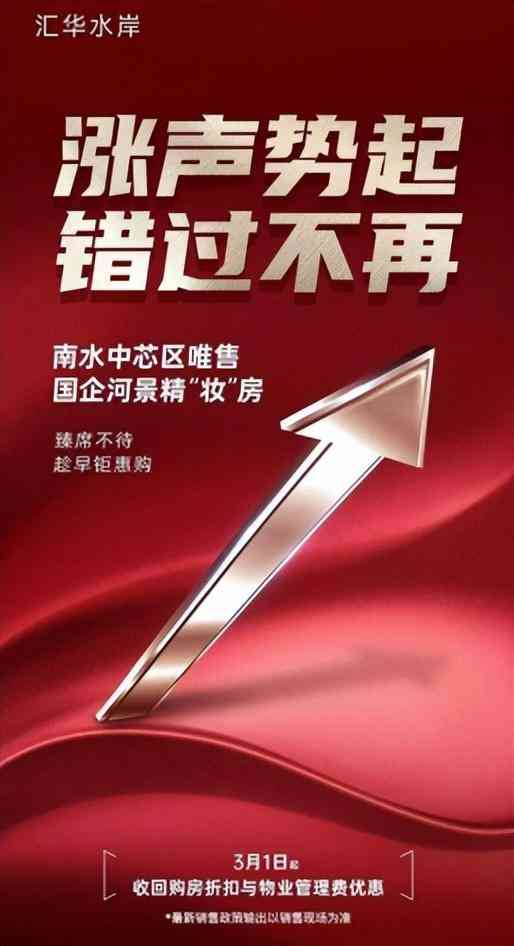 金湾的汇华水岸花园,宣布从3月1号起收回购房折扣与物业管理费优惠。