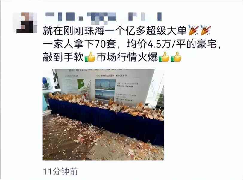 比如最近珠海就有一家人极为夸张地一口气买下70套均价4.5万/㎡的豪宅……