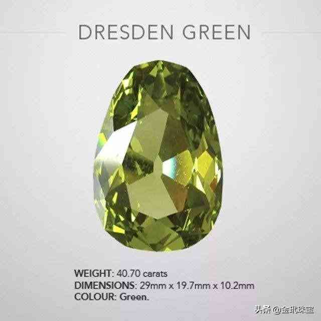 绿色德勒斯登钻石,是目前最大最美的天然绿色彩钻。钻石重达41克拉,GIA 1988年评为VS1级,净度等级全美,现收藏在德国德勒斯登的博物馆。