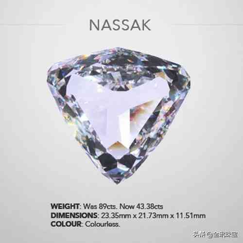纳萨克钻石最初是一颗重89.2克拉的三角形钻石,送到英国又被重新切割成80.3克拉,后来被美国珠宝商哈雷·温斯顿购去,并将三角形改制成祖母绿型,质重减至43. 38克拉。1977年被沙特阿拉伯国王购去至今。