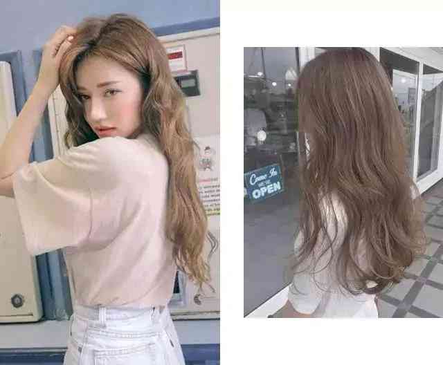 奶茶咖是奶茶色和咖啡色的混合色,带着一点点雾感的色调非常显白,还可以提升气质,不过染这样的颜色平时最好就能化点妆。▼