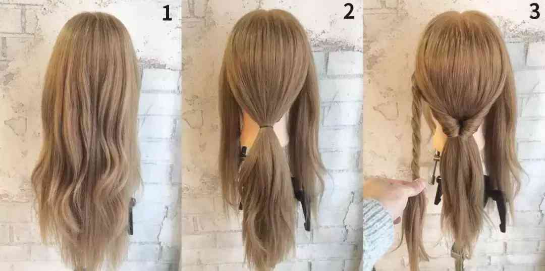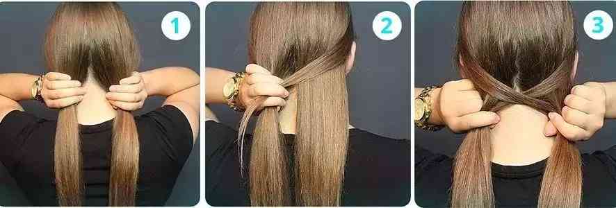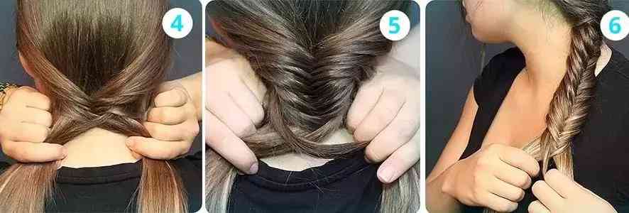 step1&2&3:先将头发分成两半,从两边头发中抽出一小撮,交叉归到另一边的头发中;