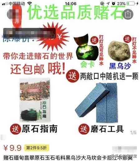 在这里,9.9包邮就可以获得一块所谓的会卡或黑乌沙原石,一份原石指南,一块磨石工具,让赌石小白瞬间可以晋升为赌石、开料的大神。