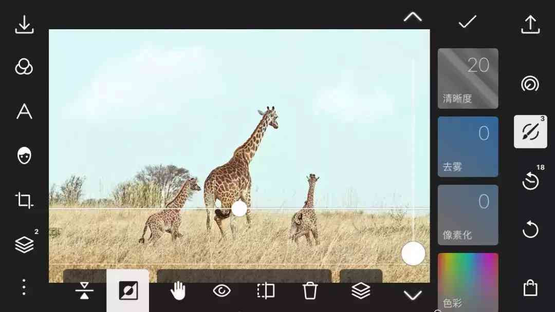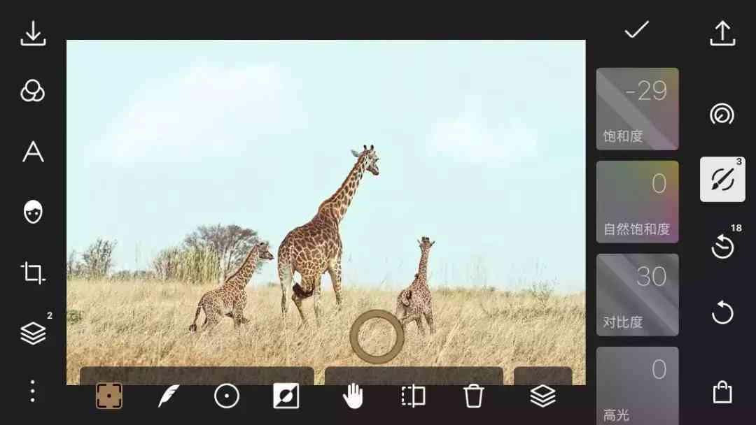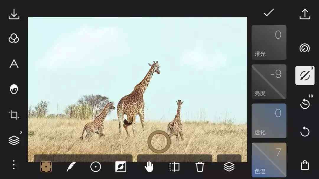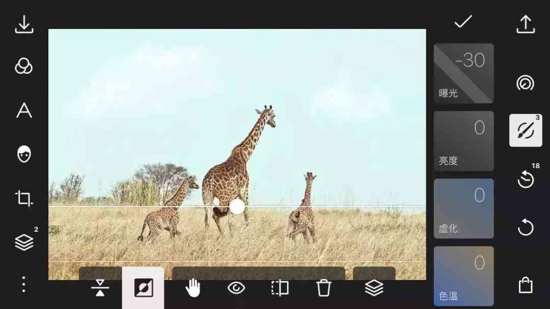 3.继续点击右侧画笔图标,最后添加渐变蒙版,降低曝光,提高清晰度,继续增加草地层次感!