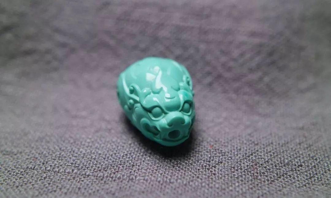 然后,对于瓷度高的绿松石,可以不戴手套盘玩。这种绿松石表面如玻璃般光滑,质地致密细腻,孔隙较小,脏污不易浸入。