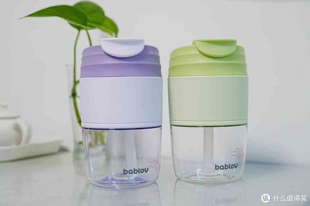 bablov就有一款便携水杯,容量480ml,有三种材质和八种颜色可选,我入手的是啵啵紫和泡泡绿,情侣一人一个挺不错。我这款杯子杯体是tritan材质,不含BPA,儿童也可以使用,能耐110℃高温,冷饮热饮都能用。