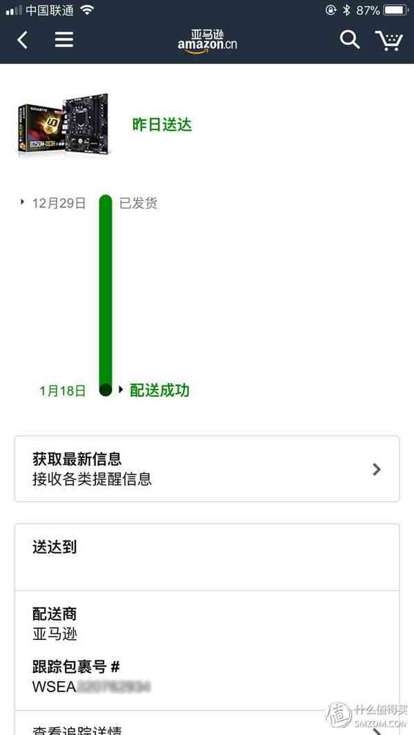 这个记录刷新了我亚马逊海淘物流慢的记录,京东的所有配件在第二天就到齐了,然后就每天打开手机看着绿色进度条一天天涨啊,想象着美国到这里的太平洋那么宽,我的主板就在海上漂啊漂,终于有一天,黑色点点到了底,一天之内,清关加本地配送全部完成,好吧给大佬跪了,早点更新我的物流信息嘛