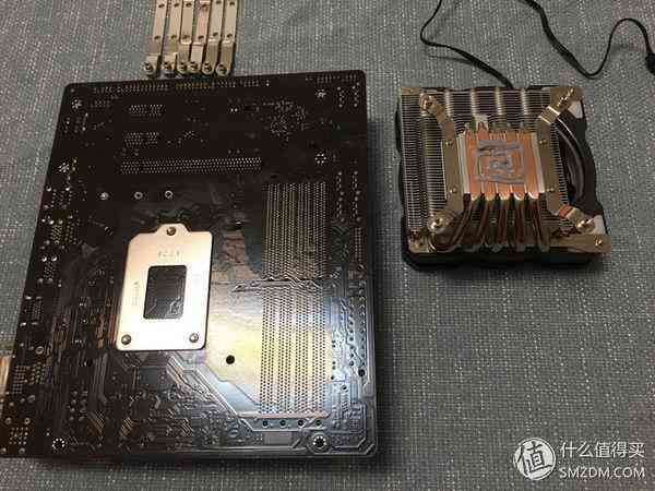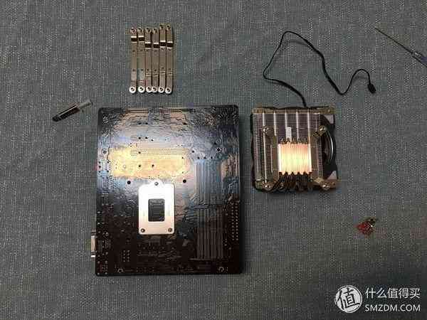 这个IS-50对Intel的CPU安装方法也是奇葩,要在背后扭上4颗螺丝,那么就只有翻过来压了,将硅脂涂到散热器上,主板反压过来后,再上螺丝