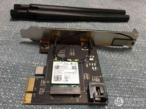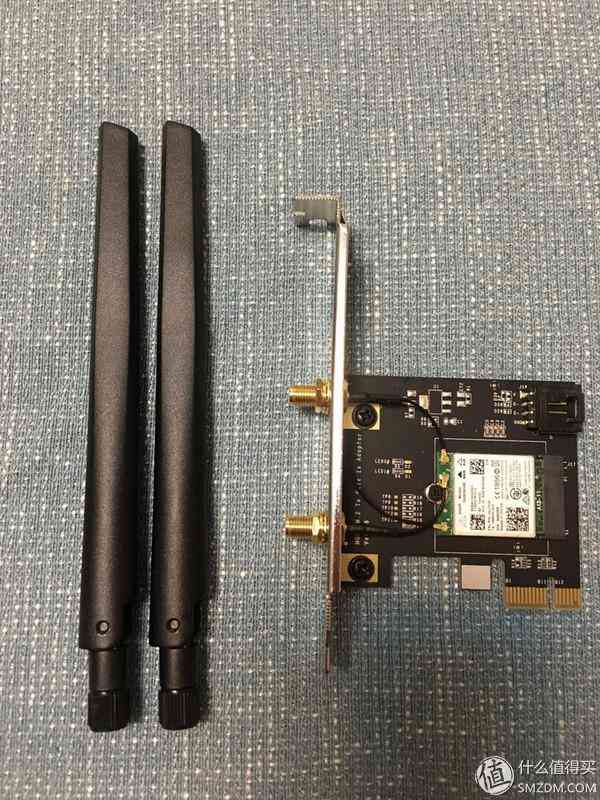 下面是一个小配件,关于台式机的 Wi-Fi 解决方案之一:PCI-E转接卡 + Intel网卡。台式机要连 Wi-Fi 还可以直接插USB网卡,但是我试过感觉信号不稳定而且速度慢,再一用迅雷之类的软件下载东西马上断,也可能是因为我用的USB网卡比较老。PCI-E的方案成本稍微高点,我用的联想笔记本拆机 AC18260(淘宝买的AC18265换下来的),以及淘宝买的18260专用Wigig天线 Antenna-M10042RRW