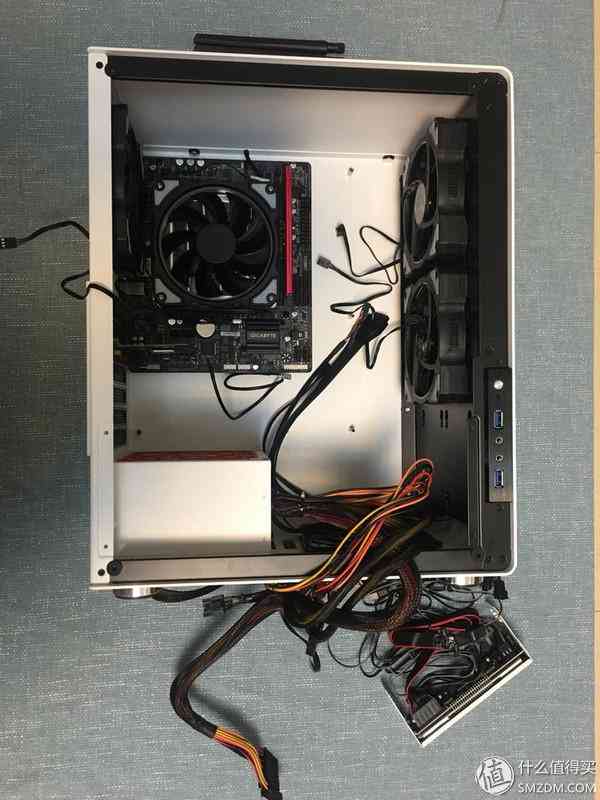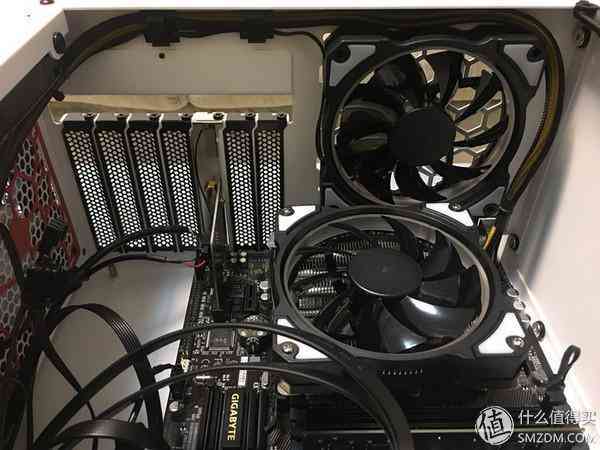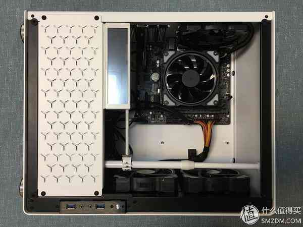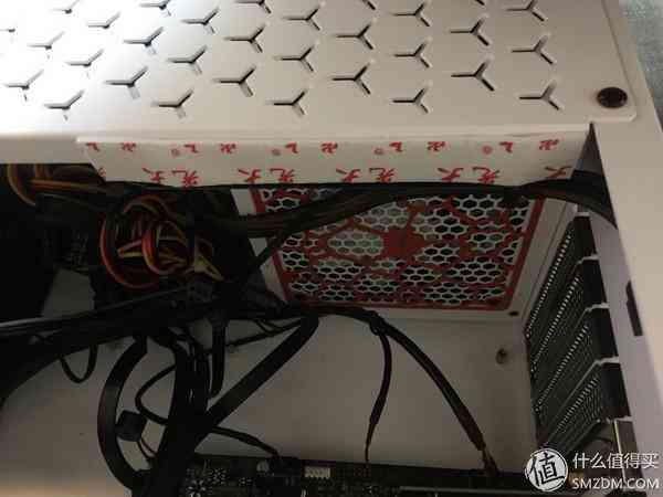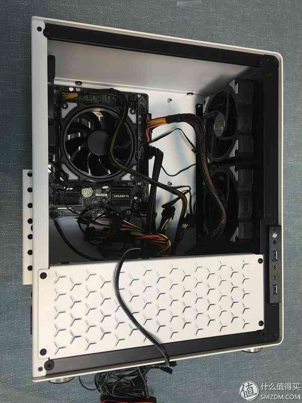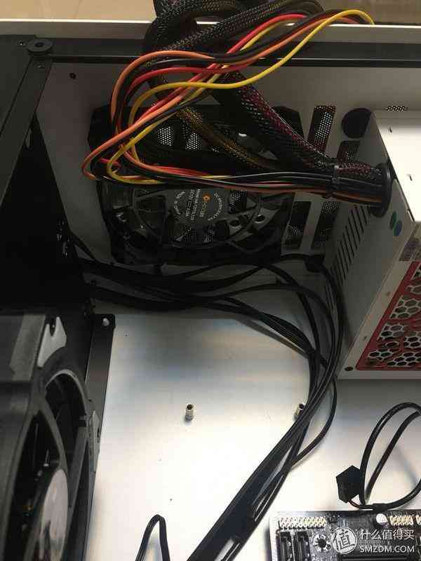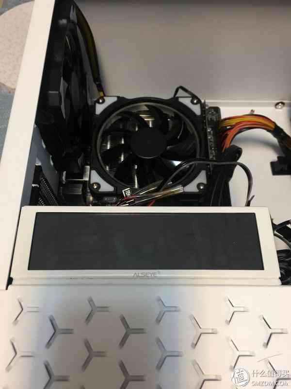 散热器原来自带的风扇换下来后,我想正好把它用在机箱底部作为进气风扇,实际上对于TDP 51W的i3-7100来说,根本不存在散热,风道之顾虑;但是U4机箱,其实是可以装成小钢炮的,有个问题是,完全没有背部走线,只有把线全部压在收纳槽里,用盖板挡住