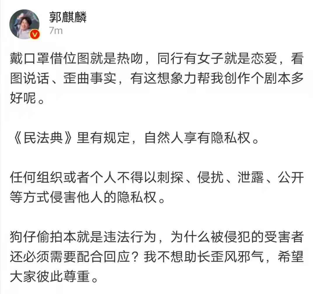 即使是真的也挺正常的,没必要解释,郭麒麟却严肃得要命,发出严正声明。