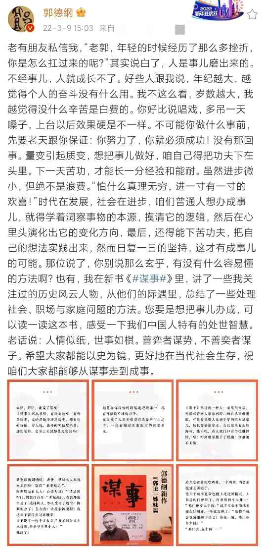 个人威信、行业地位扶摇直上;德云社运营良好,差不多是“中国男子天团”;