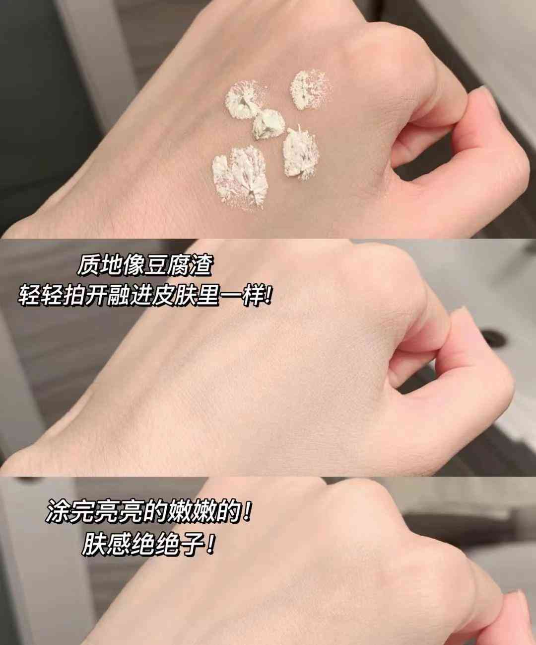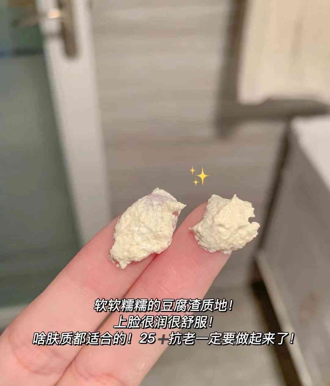 质地:质地很特别,和其他面霜不太一样,它是有颗粒感的冰淇淋质地,从外观上看甚至有一点点像"豆腐渣状"。