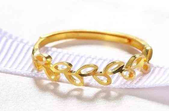 而像这种镂空式的,富有设计感的黄金戒指,即使是奔四的女人佩戴,也非常好看,气质的独特而高级。这款镂空式的黄金戒指,在戒指的正面,用的是镂空的树叶形设计,枝叶分明的感觉,显得自然而清新。