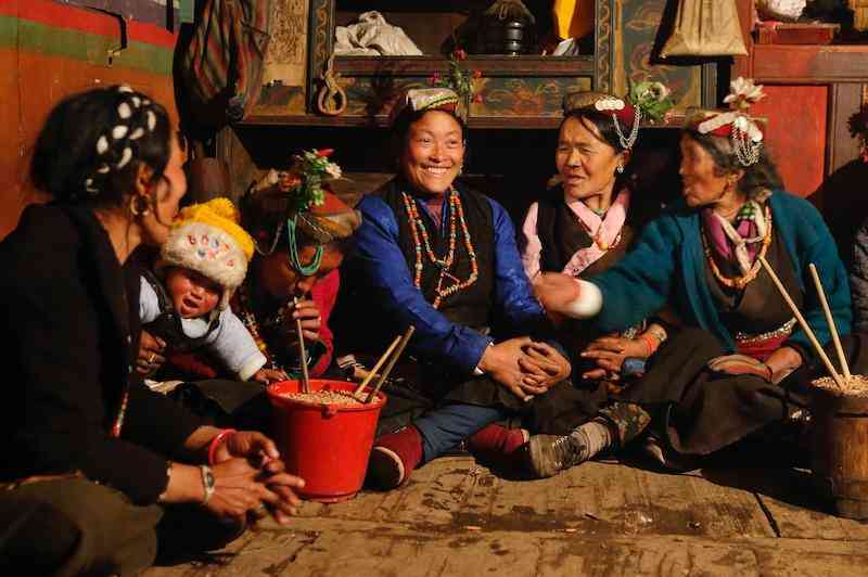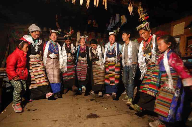 居住在喜马拉雅秘境深处的陈塘夏尔巴,因其长期封闭的自然人文环境,得以保存相对完整、独具特色的区域文化。其中,留存至今的大量非物质文化遗产如服饰等,在一些特殊场合中,充满了仪式感。