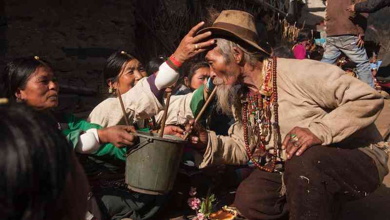 法师给盛装的夏尔巴妇女加持 2015年