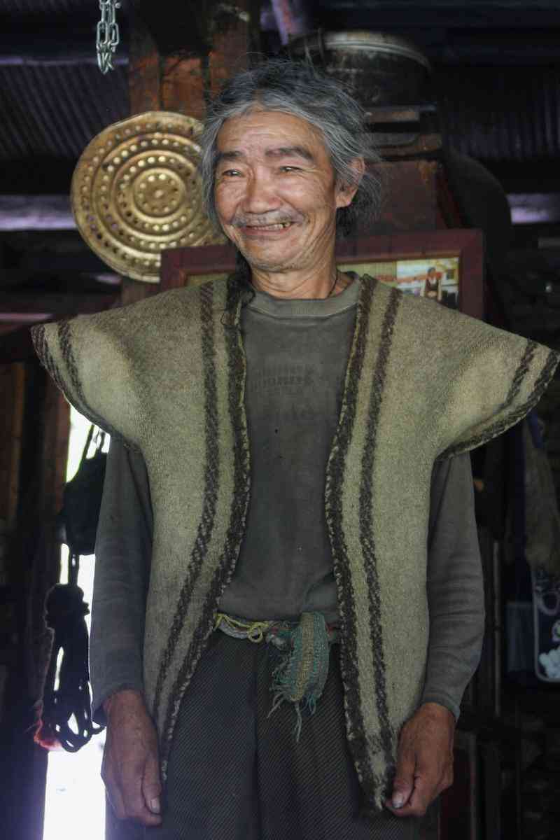 穿着30年前在尼泊尔定制的坎肩的洛坚老人 2011年