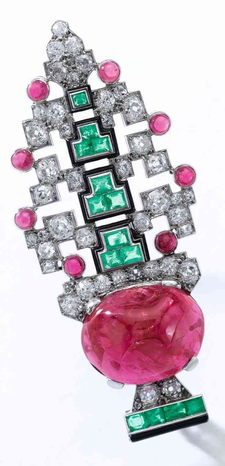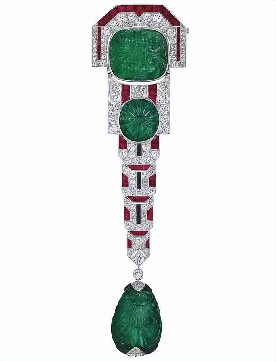卡地亚 翡翠、红宝石胸针吊坠 约 1925 年