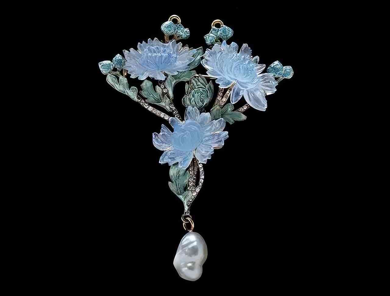 René Lalique 项链吊坠 珐琅、雕刻欧泊、珍珠