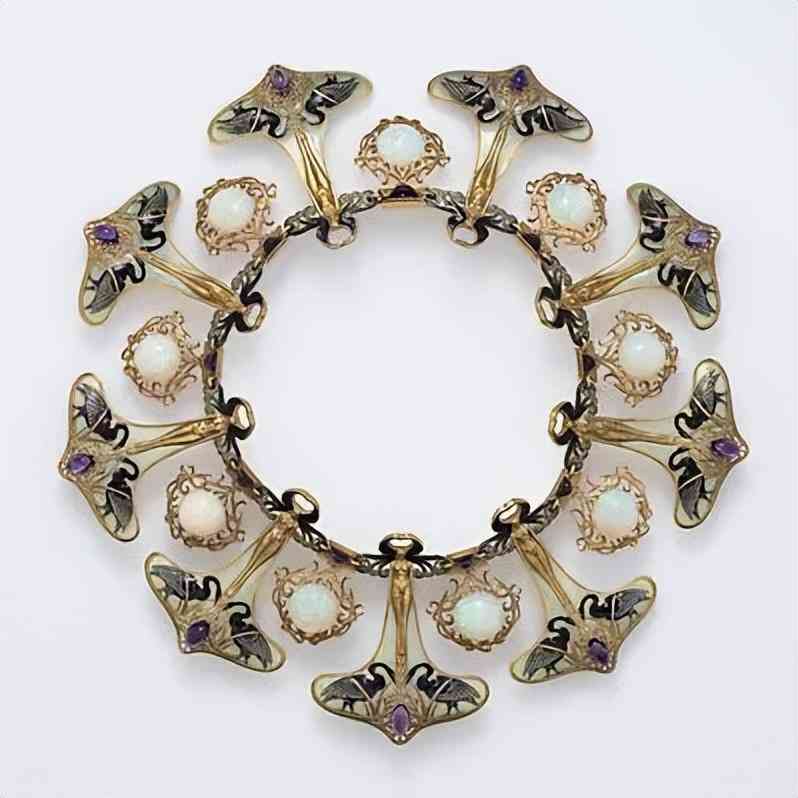他以欧泊为主石,以空窗珐琅作画,完成了一系列代表作品,每一件都让人跌进一个充满了奇异幻想的美梦,一直以来,芭珠姐都认为 René Lalique 与其说是一位珠宝设计师,不如说是一位艺术家,他的作品更像是一幅描绘梦境的画卷,欧泊那种模糊的幻彩与空窗珐琅的精致雕刻性成就了彼此,在珠宝中形成了最美好的虚实结合,留下了独树一帜的韵味。
