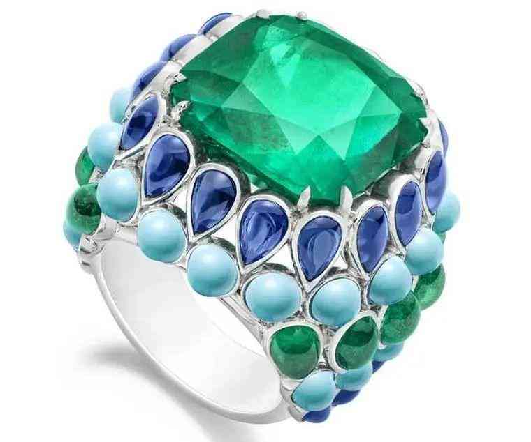 伯爵 Piaget 戒指 铂金、祖母绿、绿松石、蓝宝石