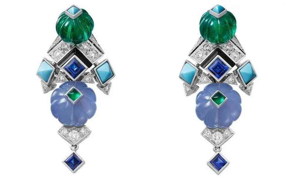 不少大牌在高级珠宝中都巧用了这种组合,比如卡地亚在的高珠系列中巧妙地将深邃沉稳的祖母绿与青春鲜艳的绿松石结合在一起,用超小粒的绿松石起到了意想不到的点睛作用。