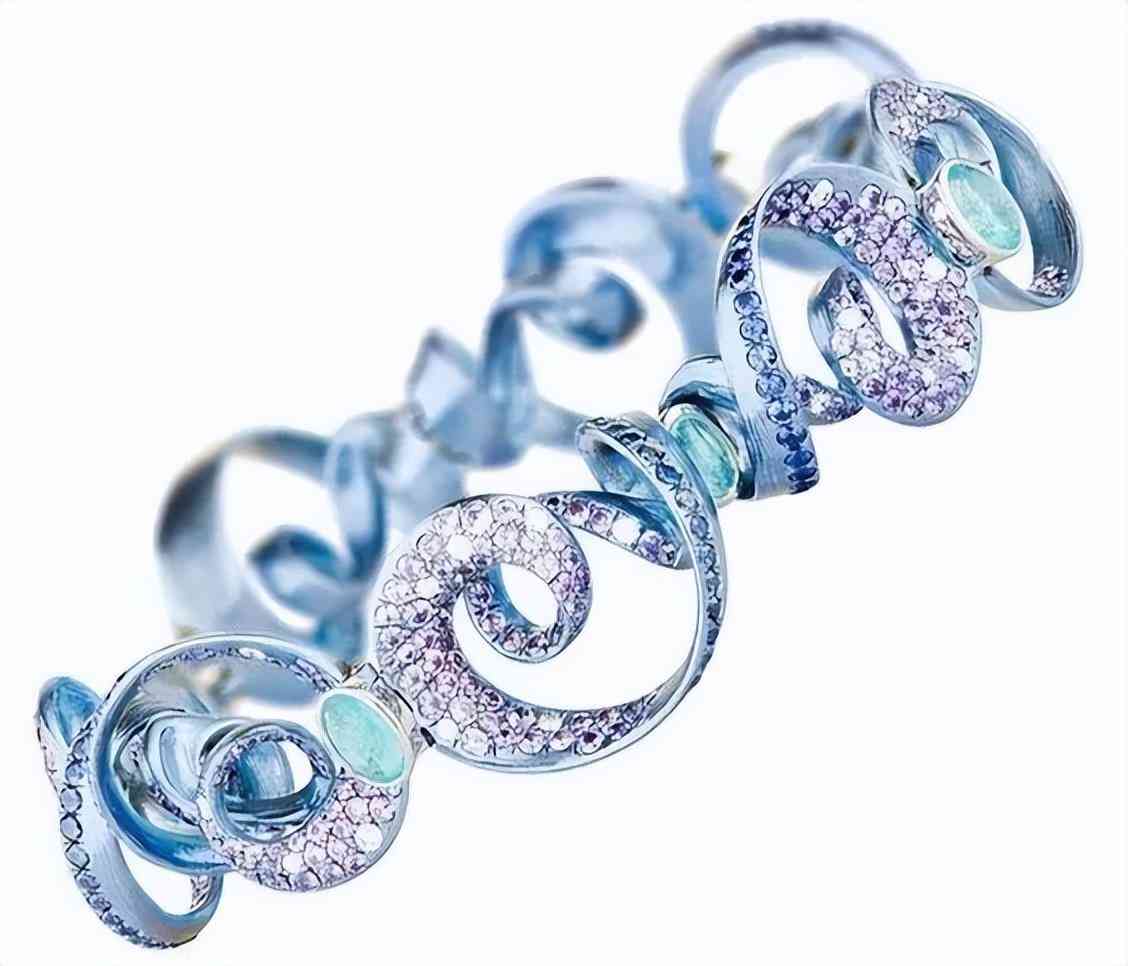 比如 Divid Morris 选择了珍稀的帕拉伊巴碧玺搭配蓝宝石,让轻盈剔透和沉稳深邃结合在一起,让人联想到深深浅浅的大海。而宝格丽则大手笔地用 5 颗重达 476.82 克拉巨大的帕拉伊巴碧玺和祖母绿搭配,则展现出生机盎然的 Style。