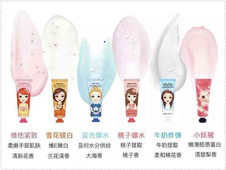 护手霜中,添加了牛奶蛋白质提取物、绿茶、山药等护肤成分,保湿、滋养效果更好一些。