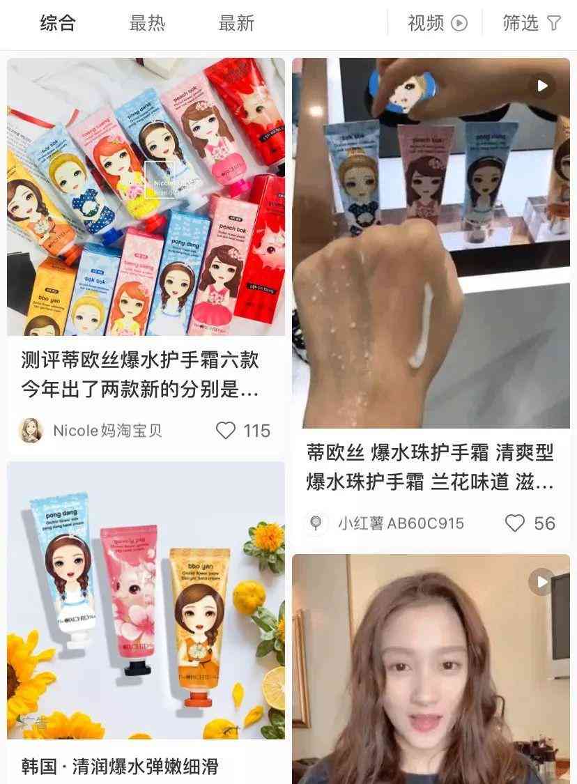 看她的视频分享,说这个护手霜很神奇,涂上可以爆出水珠,清爽滋润,持久留香,香水都省了~还亲自演示,玩得很嗨皮!