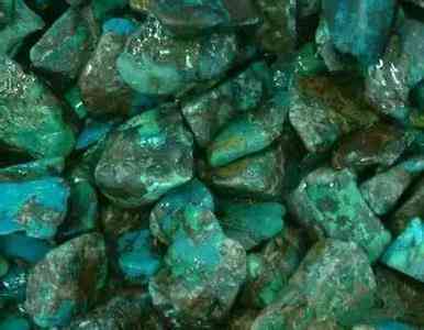 硅孔雀石的外表和孔雀石的极为相似,但硅孔雀石具有比绿松石鲜艳的绿色、蓝绿色,并为亚透明,且折射率、密度、硬度均比绿松石低。