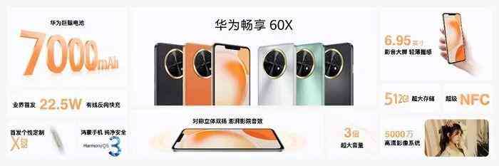 (华为nova 11系列价格一览)●华为畅享60X:大屏幕、长续航的鸿蒙手机华为畅享系列首次迎来“X”版本——华为畅享60X,新机在超强续航和超大存储上持续进阶。该机配备6.95英寸屏幕,支持HarmonyOS 3,搭载7000mAh双电芯大电池,至高配备512GB大存储。设计上,其背面采用标志性星环设计,还配备了全新X实体按键,常用功能一键直达。影像上,华为畅享60X搭载后置5000万AI双摄影像系统,将带来出色的影像体验。