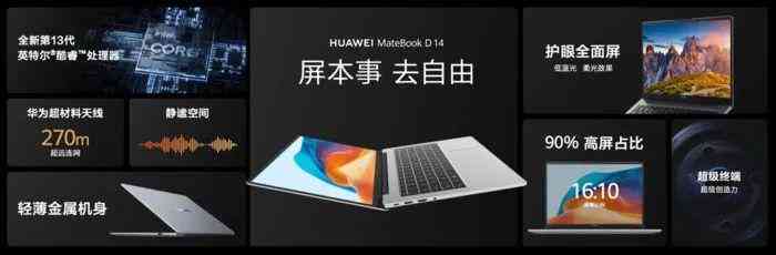 ●华为MateBook D系列:华为首发超联接笔记本升级畅快体验会上还发布了新一代MateBook D 14及MateBook D 16笔记本。其中,MateBook D 14为华为首款超联接笔记本。