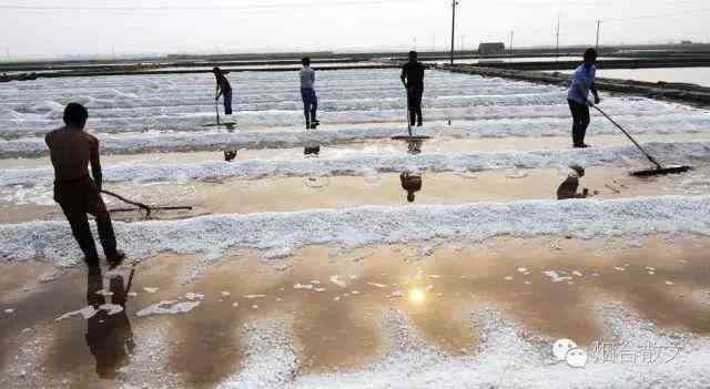 盐巴是最怕雨水,“盐把头”们早就练就了未雨绸缪的本领,雨来临之前,召集周边的村民组成临时小队用灰色的、黑色的、绿色的塑料布遮盖起那些数也数不过来的白色的小山丘,大片大片的盐池也都覆盖起来。我在小雨中走近那些盐丘,雨点从覆盖着塑料布的盐丘上蜿蜒的山溪一样从高处流下来,在地面上汇合。我沿着盐田的陇走出一个个标准的方形。正在欣赏这些雨中的景色从盐丘的后方几间简易的砖房工棚里飘出来白酒裹杂着的菜香,还有时不时的笑声穿过雨雾绕过盐丘飘过来。这种白酒裹杂着的香气很是诱人,这是小时候那些清贫岁月里吃大席时候才有的香气,在溢满整个村庄的香气里我似懂非懂的看过新娘子的红棉袄。