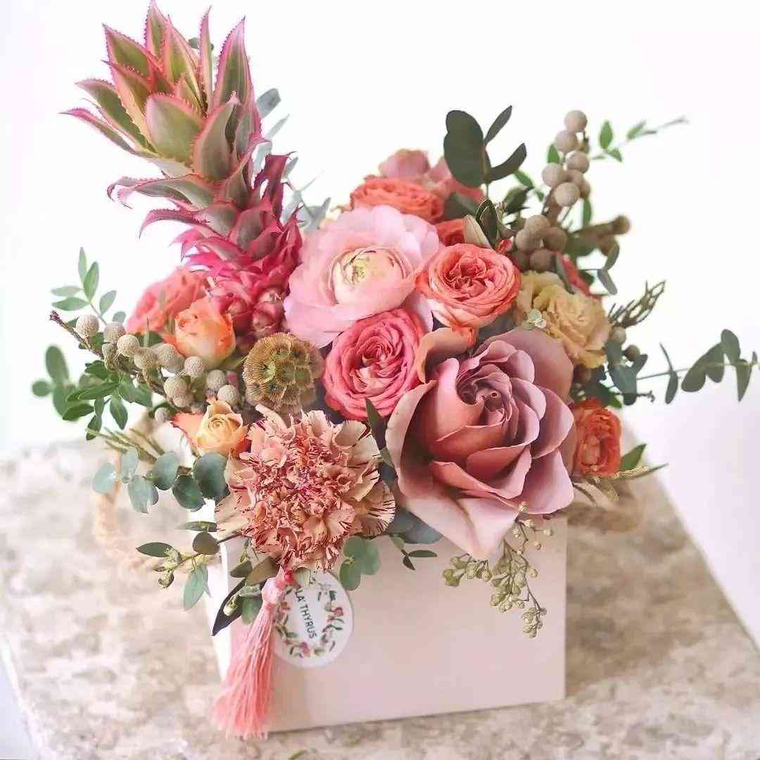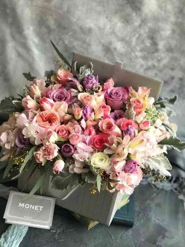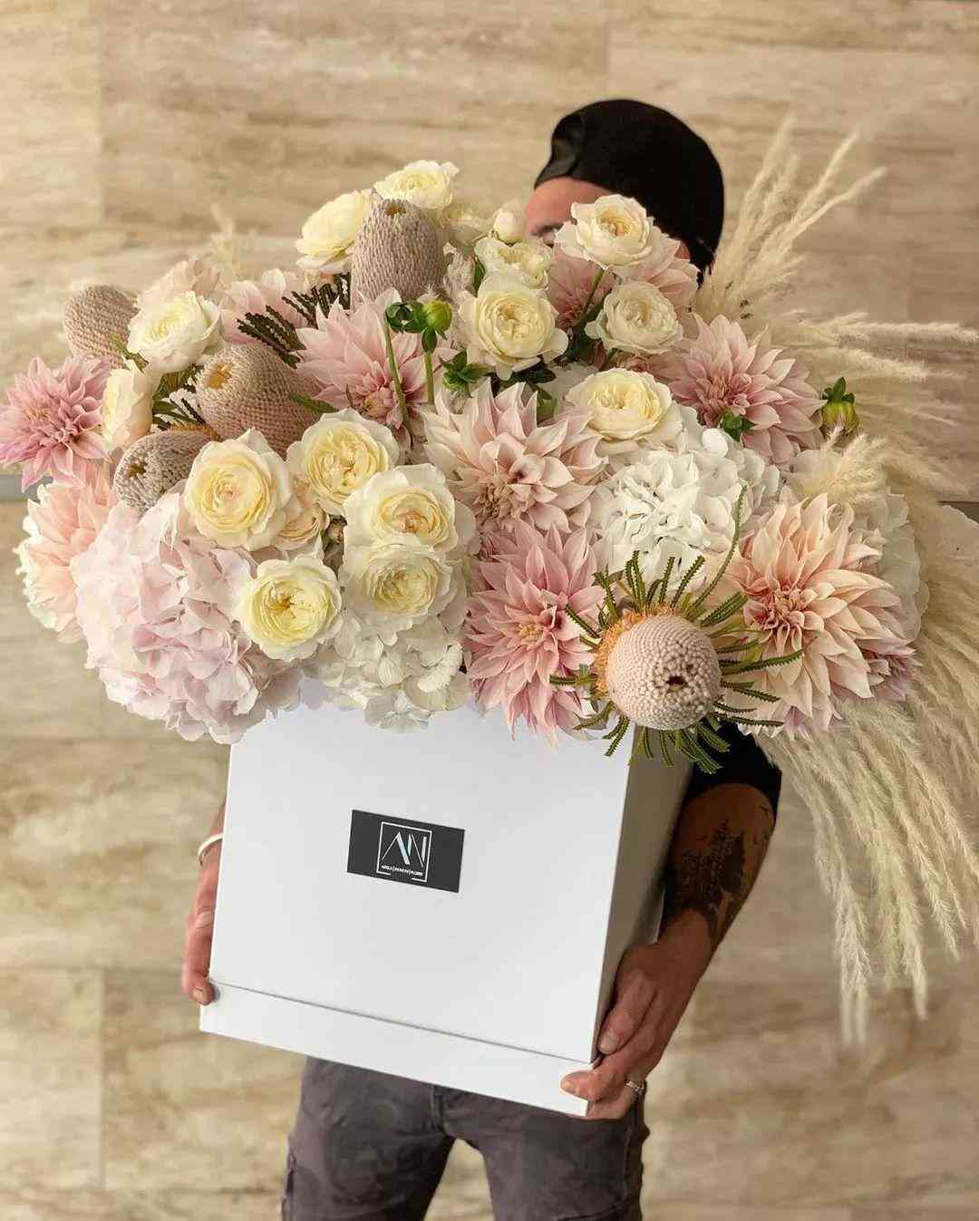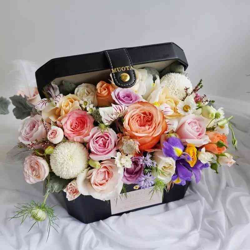 花盒是个百变女神。花束不管怎么包还是花束,花盒不仅形式多样,还可以搭配各种各样的东西,高端大气上档次,送女友送母亲送客户送员工,毫不费心,又满怀心意。
