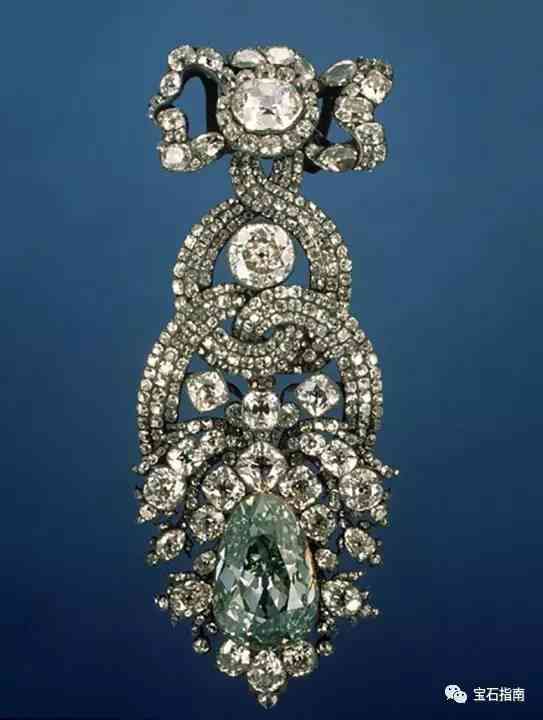 德累斯顿绿钻有着王室血统:1726 年,波兰国王 Augustus the Strong(“大力王”奥古斯特)将其购得并镶入金羊毛勋章。 GIA 宝石学家将德累斯顿绿钻描述为彩绿色,采用改良的梨形明亮式切磨。 Green Vaults(绿穹珍宝馆)记录显示,该钻石重 41 克拉。