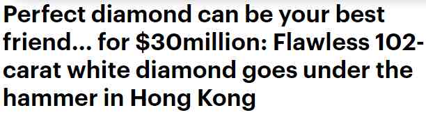 据报道,重量超过100克拉的白钻,以往在拍卖场上仅出现过七枚,成交价动辄超千万美元。