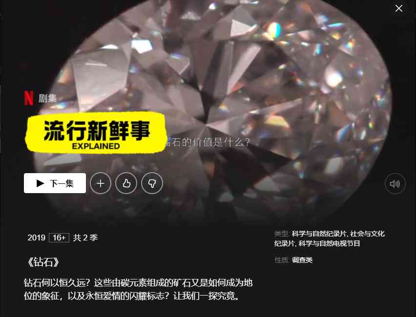 最近,Netflix出品的纪录片《流行新鲜事》中,就有一集是专门探究钻石的。