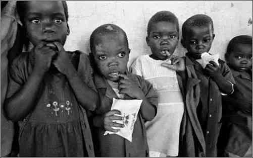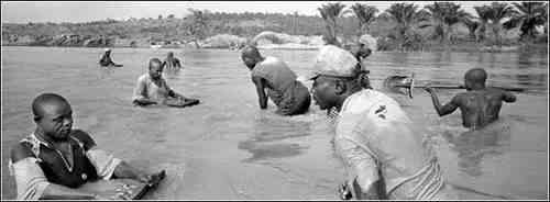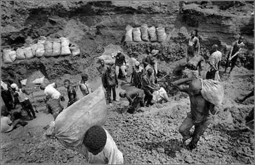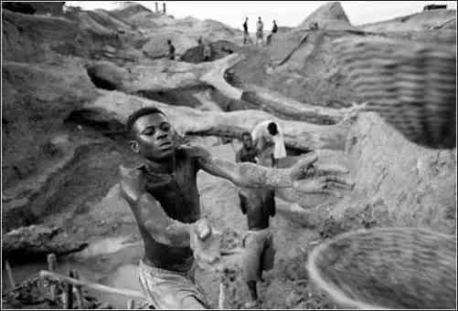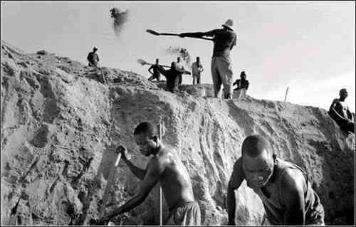 在非洲,有些矿工们卖力后没有工钱只有食物。