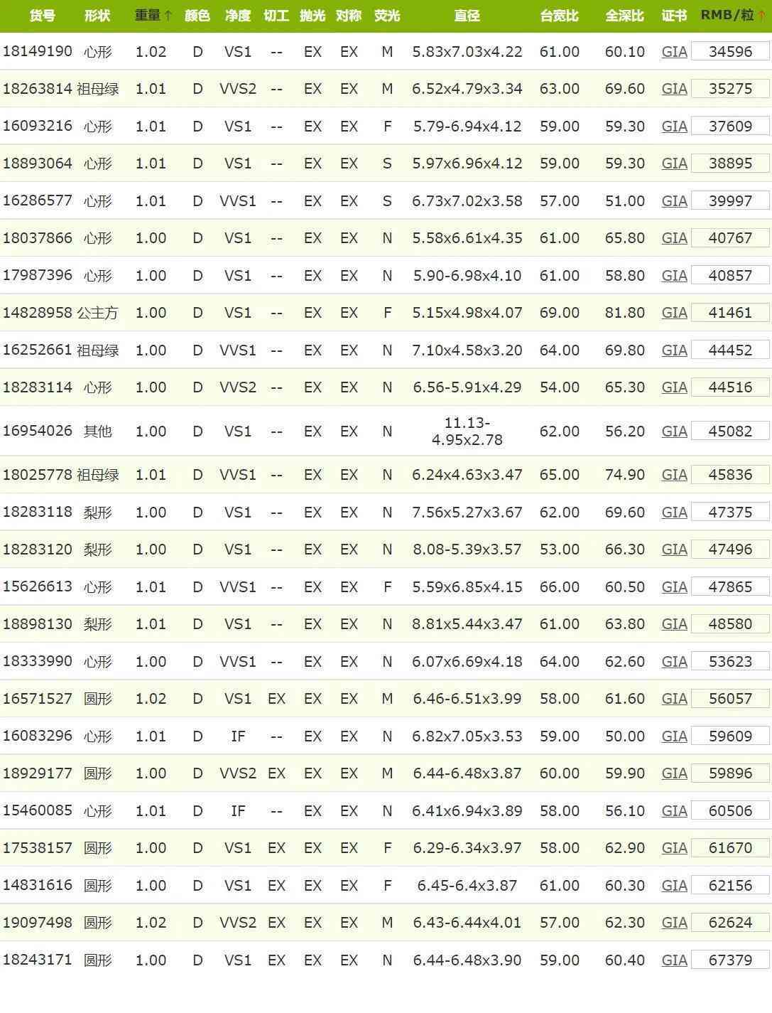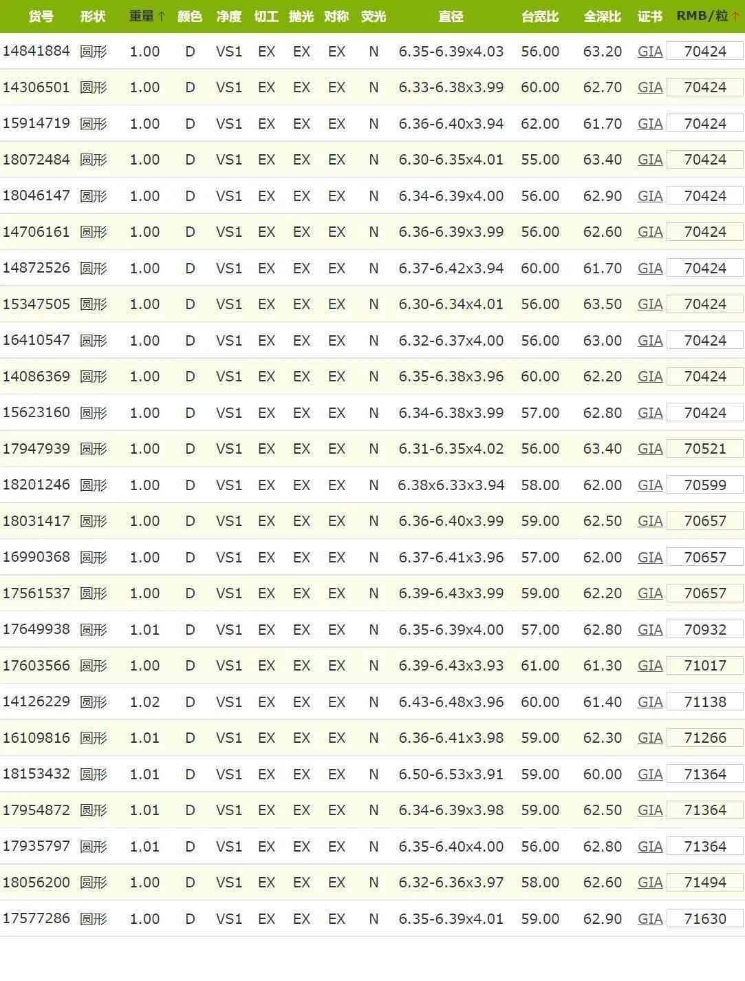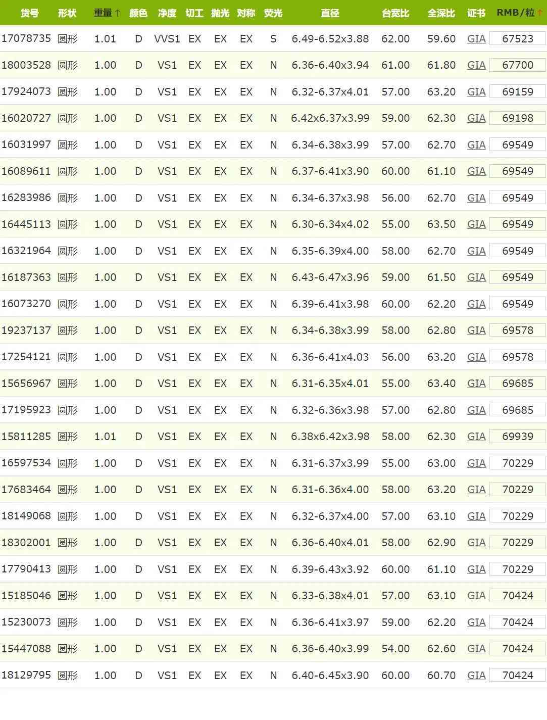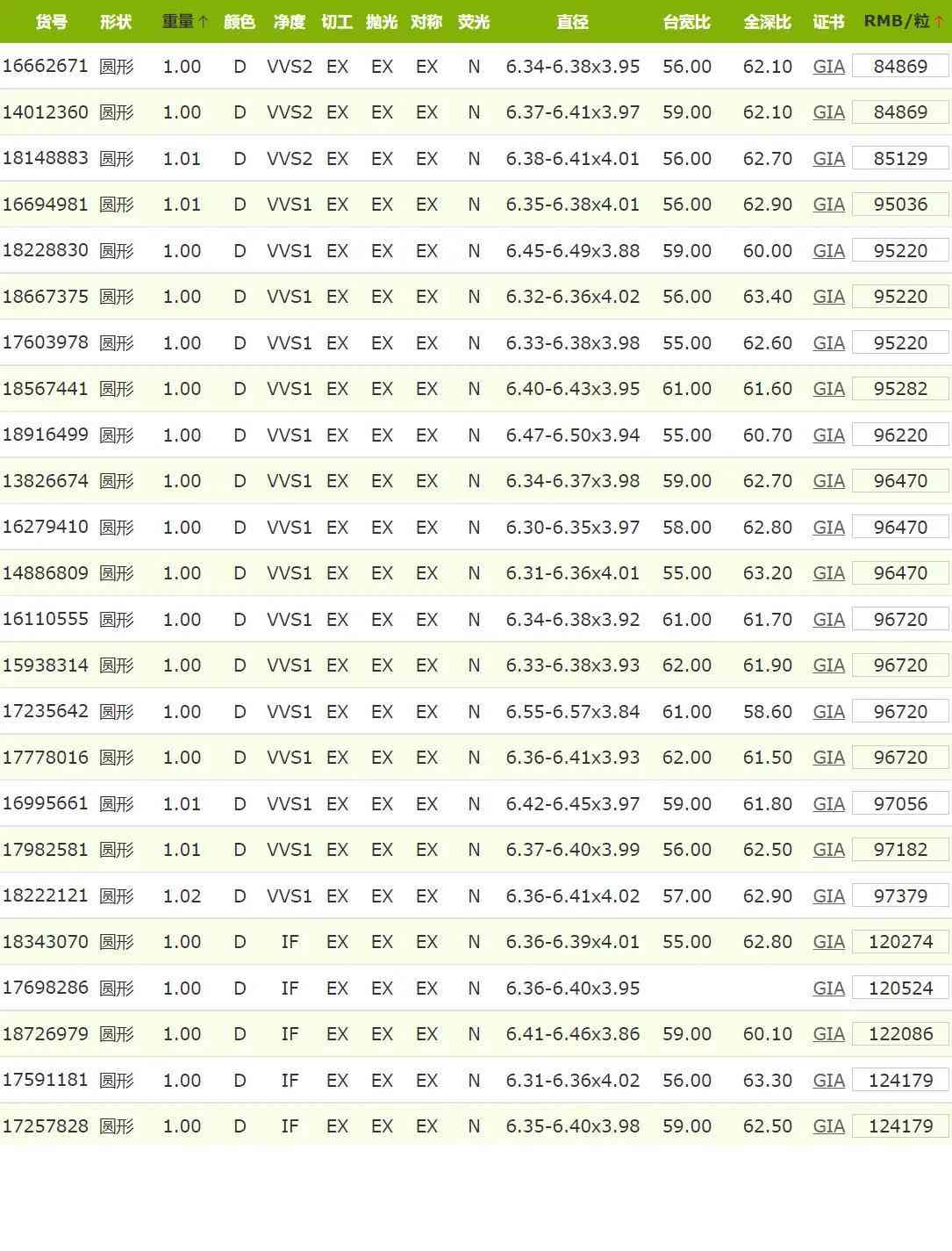 2022年6月GIA证书1克拉D色钻石价格