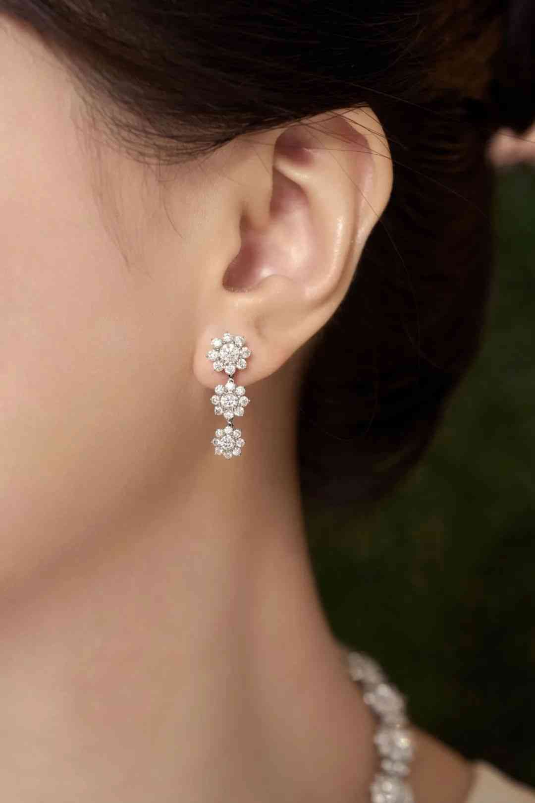 这款三蕊钻滴耳环则更加小巧玲珑,三朵大小渐变的向阳花,把明媚光彩凝聚在耳畔,还会随着动作微微摇曳,十分灵动俏皮。