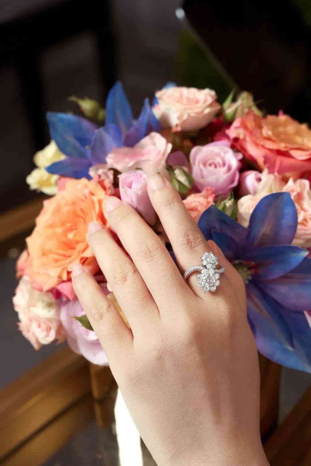 Sunflower戒指也非常推荐,这种主钻围绕一圈小钻的款式,有着很好的视觉放大效果,轻松戴出鸽子蛋既视感~
